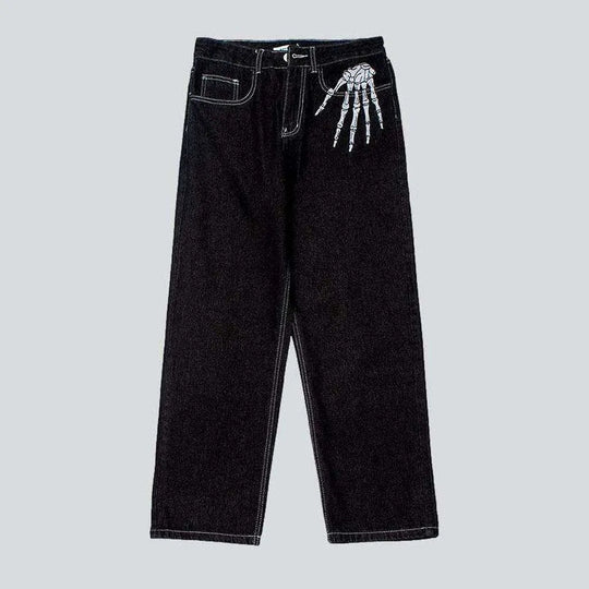 Bone print baggy men's jeans