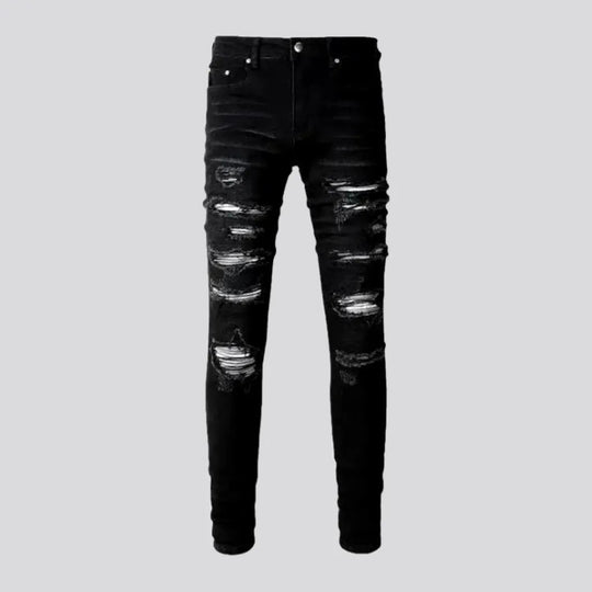 Black patch knees men's skinny jeans